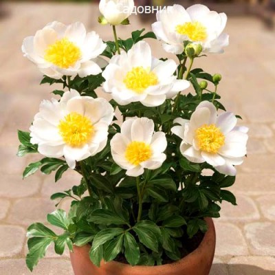 Цветки этого сорта пиона крупные, более 10 см в диаметре, имеют форму анемоны с жёлтой серединкой. Пион патио Дублин прекрасно подходит для выращивания в контейнерах, а также для украшения бордюров, террас и балконов. Кроме того, его цветки прекрасно смотрятся в букетах.