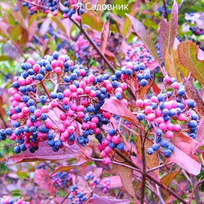 Калина складчатая Пинк Бьюти — это восхитительный кустарник, который украсит любой сад. Его листья имеют потрясающий розово-пурпурный оттенок, который сохраняется даже с наступлением холодов. Ягоды этого сорта имеют насыщенный синий цвет, что создаёт эффектный контраст с яркими листьями.